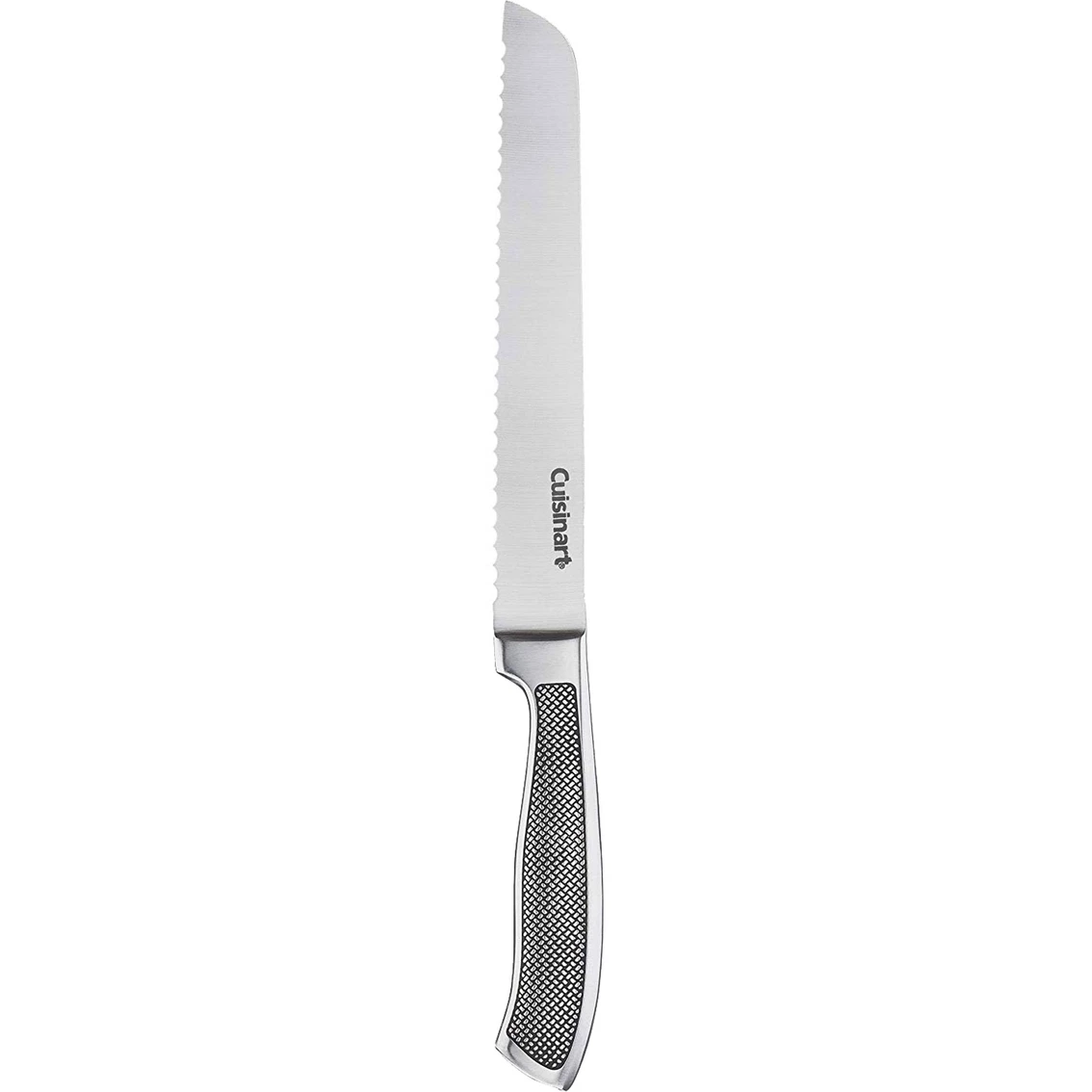 The Cuisinart Graphix 8-in. Bread Knife features a beautifully textured handle, making it a joy to use. The superior high-carbon stainless steel blade provides for precision and accuracy. The precision-tapered ground blade narrows gradually to an extremely sharp, fine edge. The textured handle makes for easy, comfortable cutting. Lifetime warranty. Model: C77SS-8BD.