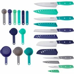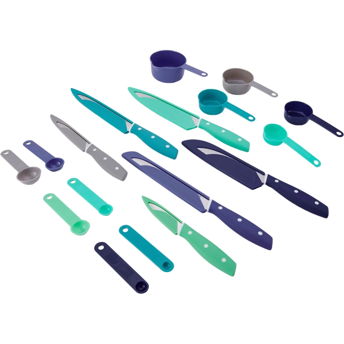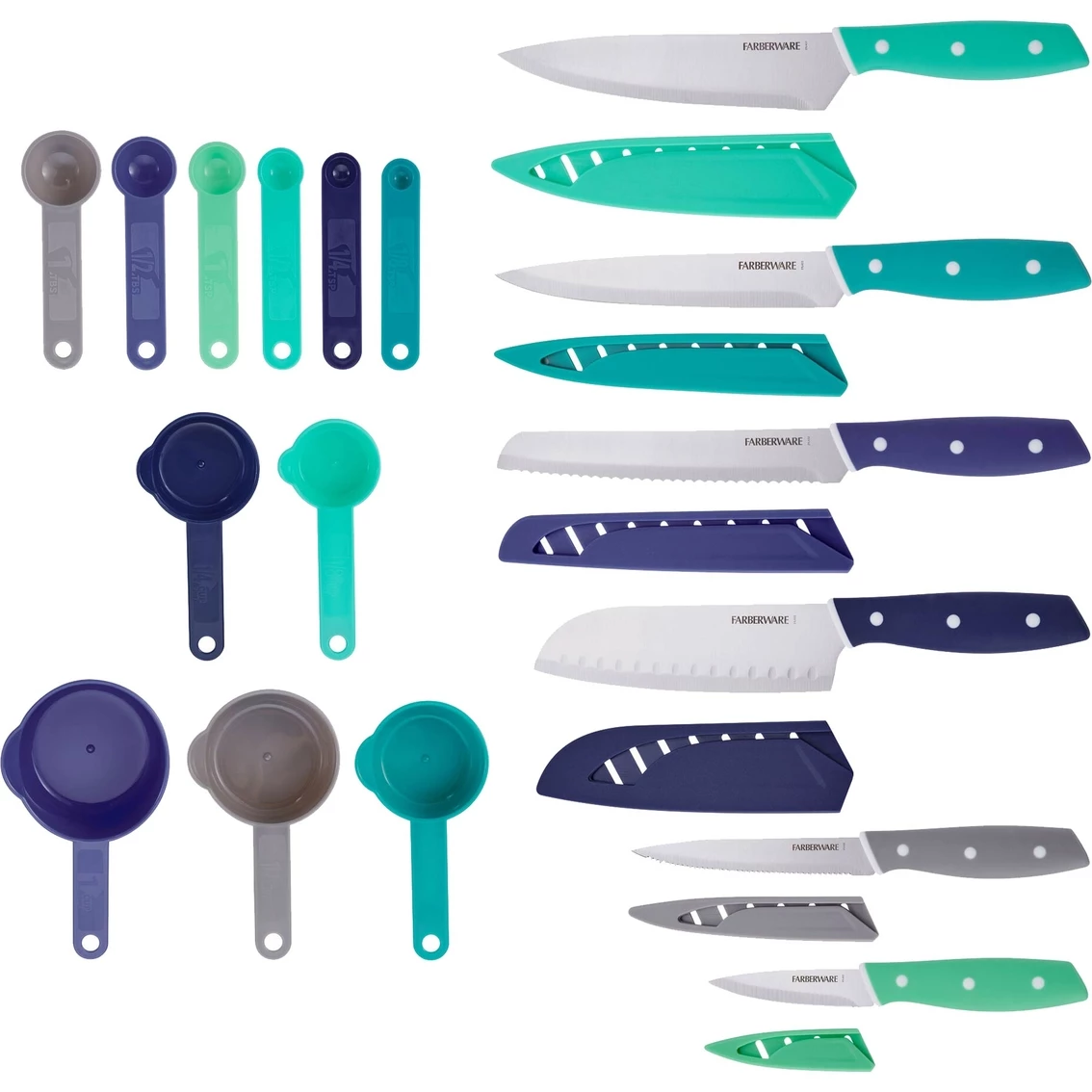 This 23-Piece Cutlery and Gadget Set by Farberware provides you with all the necessities for everyday food prep tasks. The razor-sharp, high-carbon stainless steel blades cut with superior precision, while the triple-riveted, ergonomic handles provide optimal comfort and control.