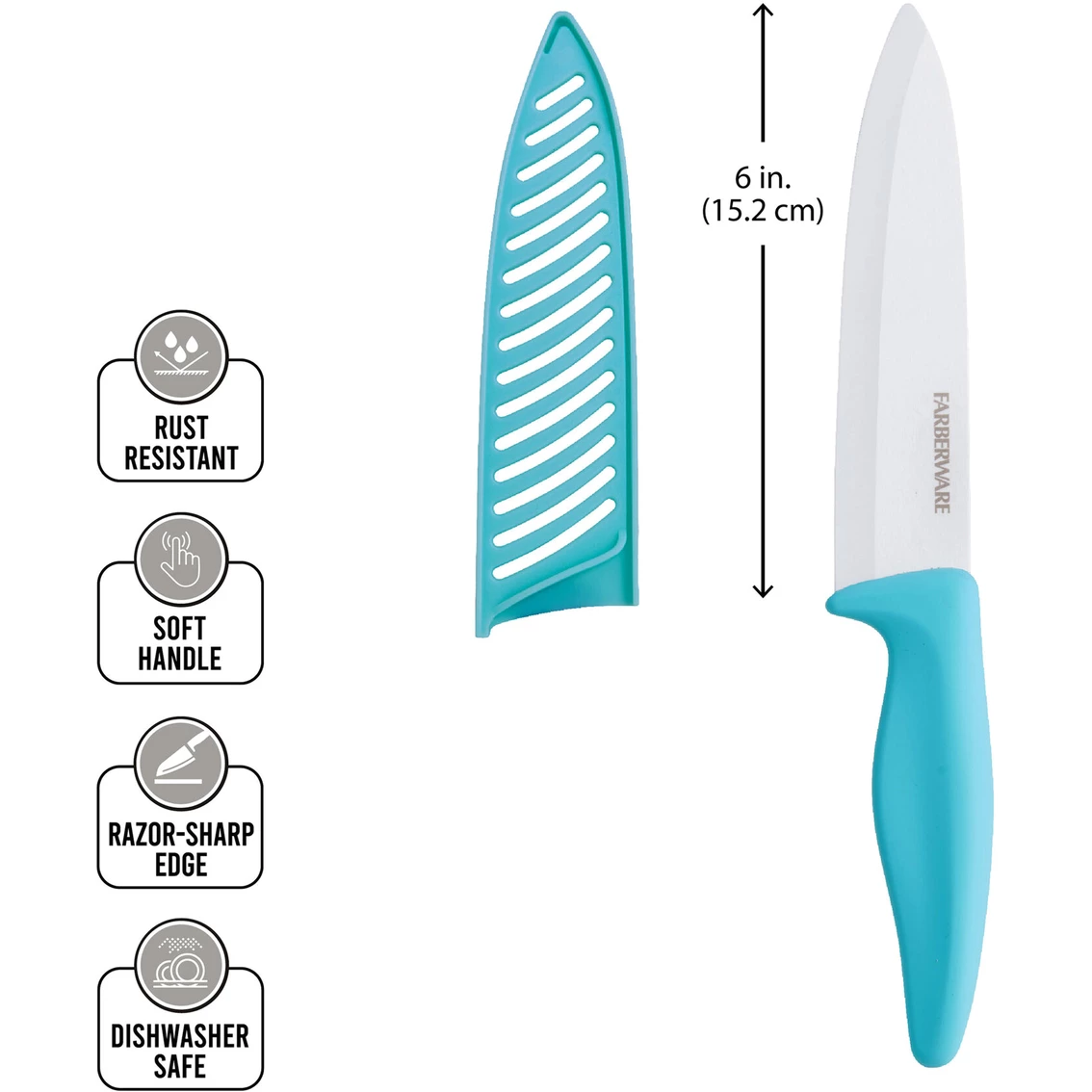 This Farberware Ceramic 6-Inch Chef Knife is at the forefront of cutlery technology. Forged from zirconia – a material second only to diamonds in hardness – the resulting blade is extremely durable and unbelievably sharp.