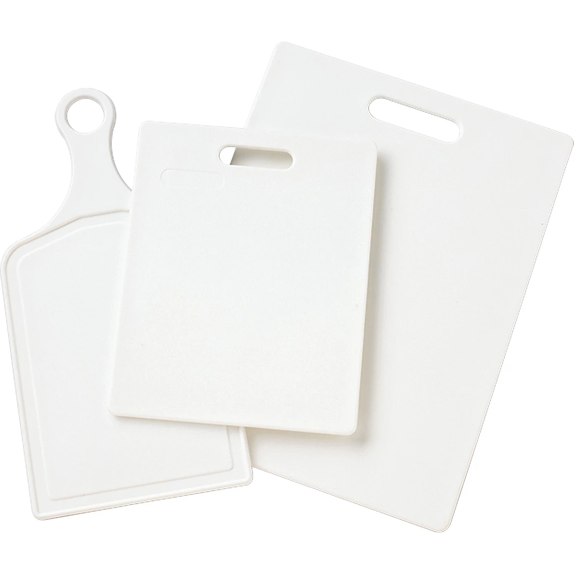 This Farberware Cutting Board Set is functional, hygienic and easy to clean. The non-porous surface will not harbor bacteria, absorb odors or dull your knives. Dishwasher safe. Set of three boards includes one each: 8 in. x 10 in., 7 in. x 14 in. and 10.5 in. x 14 in.