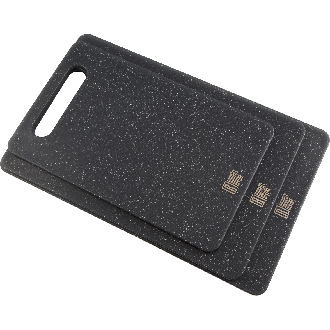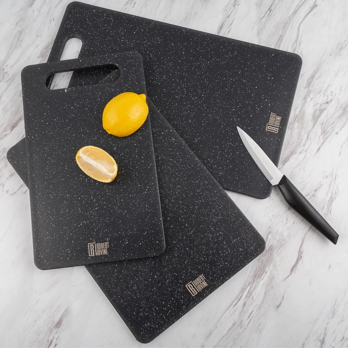 Chef Robert Irvine’s Black and Grey Cutting Board Set has three different sizes – each double sided with no slip feet. Constructed from polypropylene and BPA free, this set is dishwasher safe.