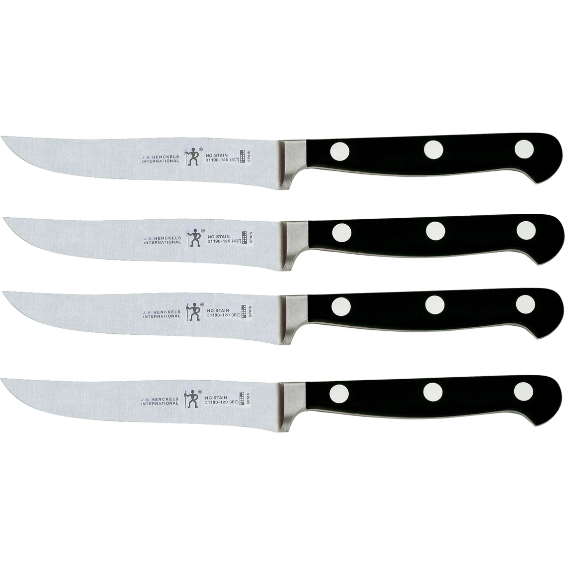 This classic 4 piece steak set includes: 4-4 in. Steak Knives. The master piece of safety, ergonomics and comfort is the top selling series made in Spain. All ZWILLING J.A. HENCKELS products are fully guaranteed against defects in materials and/or craftsmanship.
